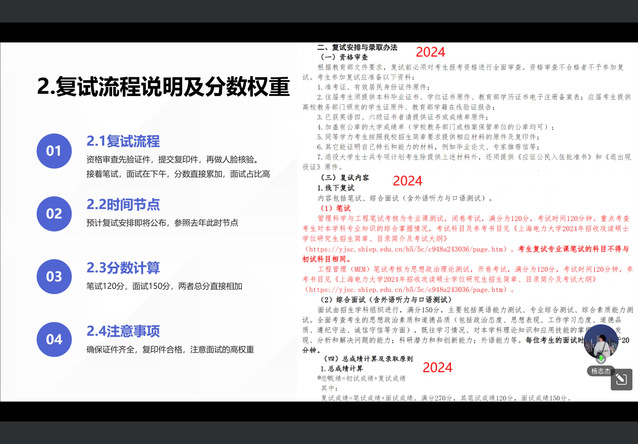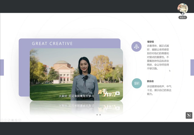 针对面试准备,学长们强调“细节致胜”:简历需突出科研实践、技能证书等硬核亮点,避免冗余信息;着装建议选择商务休闲风格,展现专业形象。在实战技巧方面,学长对自我介绍、专业提问、自由问答等环节逐一拆解,特别建议“遇难题可从关联领域切入分析,避免冷场”,并建议考生提前模拟面试场景。分享者们提醒到“复试成绩通常占总成绩30%-50%,直接影响录取结果及奖学金评定,必须“细节决定成败”。最后,分享会还针对调剂策略、导师沟通技巧等延伸话题提供实用建议,助力考生从容应对复试挑战。