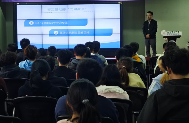 为帮助新生明晰专业前景、规划大学生涯,11月14日,威尼斯wns8885556邀请2014届优秀校友、现任国网上海市电力公司超高压分公司变电运维现场工程师的邸超为2025级能源服务工程专业新生举办了一场别开生面的校友导师见面会。见面会现场气氛热烈,2025级新生们对这位“大师兄”的到来报以热烈的掌声。见面会由2025级能源服务工程专业辅导员朱文沛主持。邸超校友结合自身在能源电力行业一线多年的工作经历与感悟,为初入大学校园的学子们带来了宝贵的三点建议。