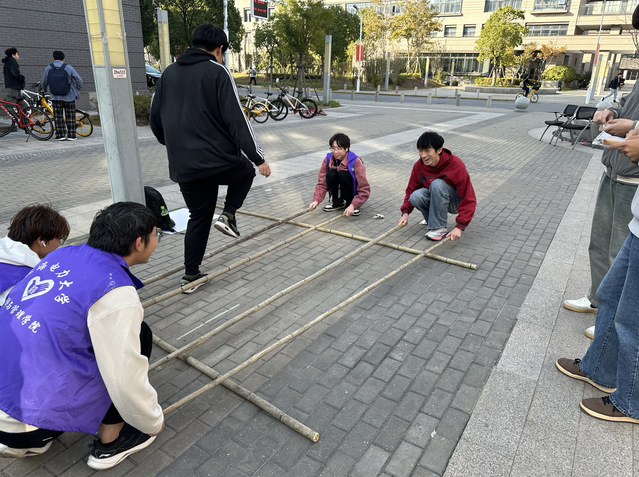 民族游戏区成为互动体验的热门打卡地。汉族传统游戏投壶趣味十足,在精准投掷中感受中华传统文化的雅致韵味;黎族跳竹竿则充满动感与协作性,师生们在欢声笑语中体验黎族人民的热情与活力,沉浸式感受传统游戏背后的民族智慧。