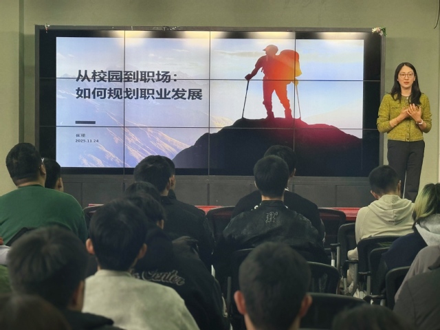 11月26日下午13:00,工商管理系在经外楼A305成功举办了主题为“从校园到职场:如何规划职业发展”的专题讲座。本次讲座特邀贝卡尔特管理(上海)有限公司橡胶加强事业部亚洲区财务总监崔珊女士担任主讲嘉宾,面向工商管理专业2026届学生,围绕职业规划、企业需求与个人核心竞争力等核心议题展开深度交流。