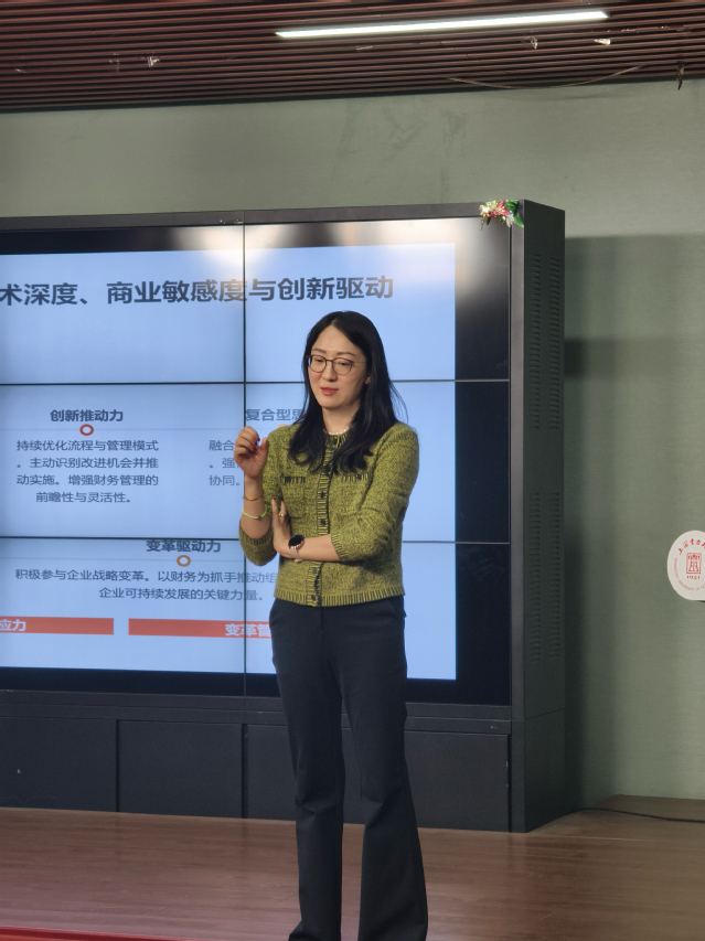 崔珊引导学生转换视角,从“我需要什么工作”转向“企业需要什么样的人”。她指出,企业招聘的本质是“匹配”,寻找的是能力、性格、价值观与岗位、文化契合的人才。她特别强调,企业真正需要的是能解决问题、创造价值的人,而非仅成绩优异或简历亮眼的求职者。作为财务领域的资深管理者,崔珊还系统介绍了财务人员的职业发展路径及未来人才画像。她指出,现代财务人才应兼具技术深度、商业洞察与创新推动力,成为融合专业能力与战略视野的复合型专家,并鼓励学生在技术与管理两个方向持续深耕。