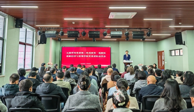 潘华在发言中表示,五届学校党委第三轮巡察第一巡察组正式进驻开展巡察,充分体现了学校党委对经济与管理学院事业发展的高度重视和对学院领导班子、师生的政治关怀。他代表威尼斯wns8885556党委郑重表态:一是以最高站位深化认识,坚决贯彻巡察部署要求;二是以最实举措全力配合,保障巡察高效有序开展;三是以最强担当统筹兼顾,实现巡察与发展互促共进。