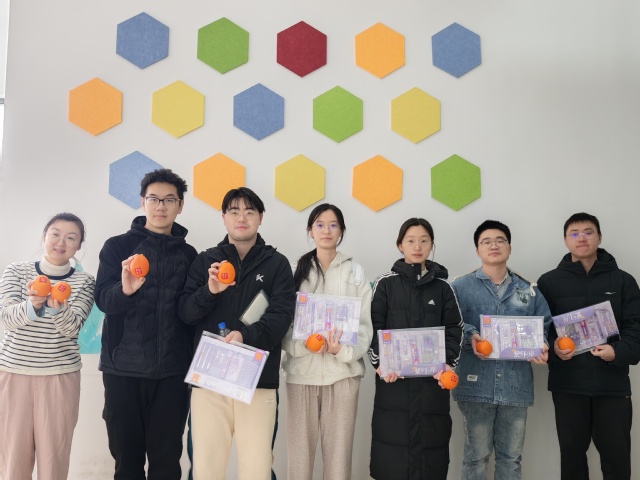 最受学子欢迎的慰问物资分发环节,将活动氛围推向高潮。本次慰问为每位考研学子准备了“紫定上岸”专属文具套装与贴有“成功上岸”标签的橙子——“紫”谐音“自”,寓意“自信定能上岸”,新鲜橙子则象征“心想事成、成果丰硕”,这份充满巧思的礼物,让学子们在寒冬中感受到满满的暖意与祝福。